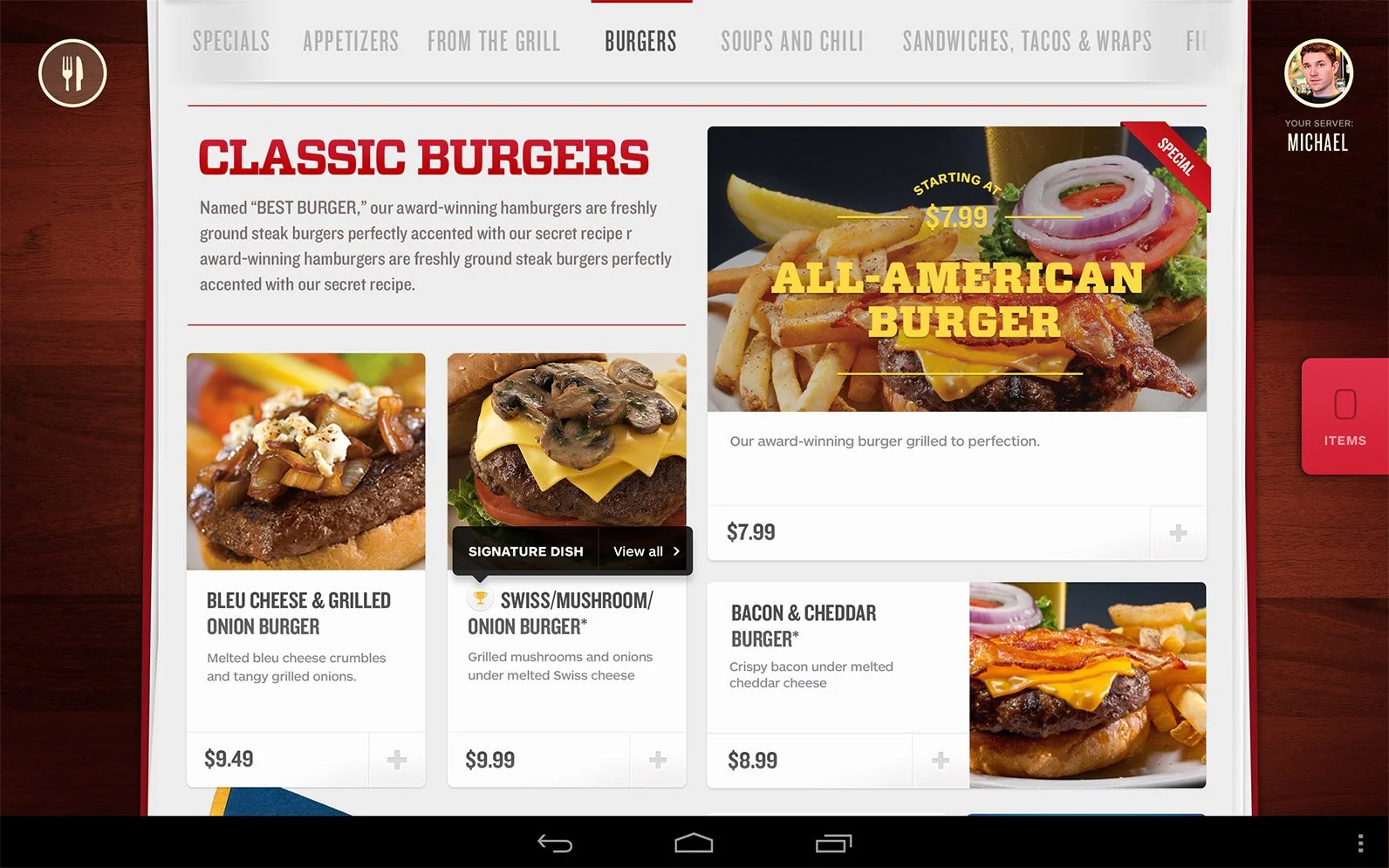 The solution offers large chains or independent casual dining restaurants with these capabilities: menu customization, real-time data and on-menu browsing, Individual and multiplayer games, and POS integration.